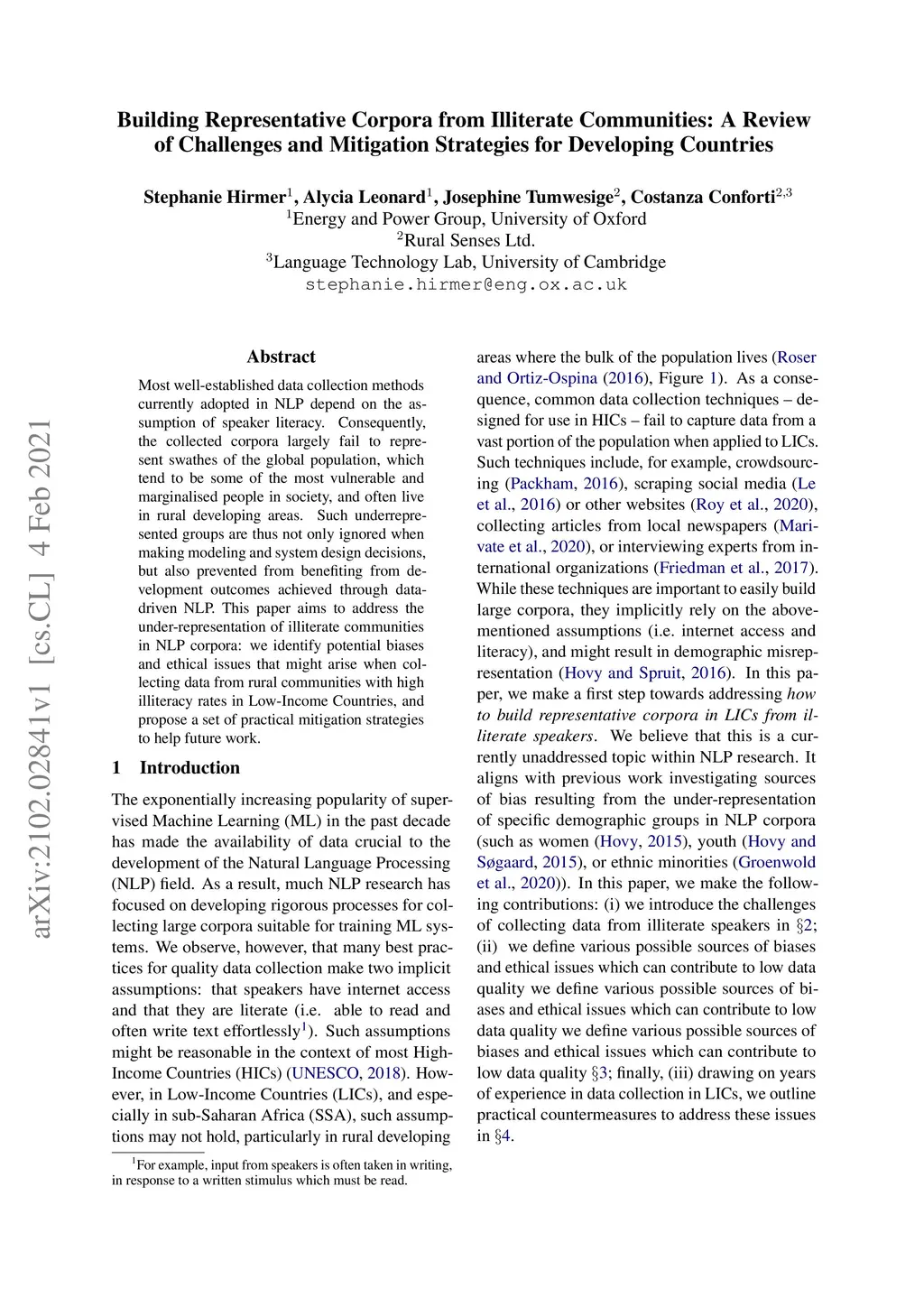 Most well-established data collection methods currently adopted in NLP depend on the assumption of speaker literacy. Consequently, the collected corpora largely fail to represent swathes of the global population, which tend to be some of the most vulnerable and marginalised people in society, and often live in rural developing areas. Such underrepresented groups are thus not only ignored when making modeling and system design decisions, but also prevented from benefiting from development outcomes achieved through data-driven NLP. This paper aims to address the under-representation of illiterate communities in NLP corpora: we identify potential biases and ethical issues that might arise when collecting data from rural communities with high illiteracy rates in Low-Income Countries, and propose a set of practical mitigation strategies to help future work.