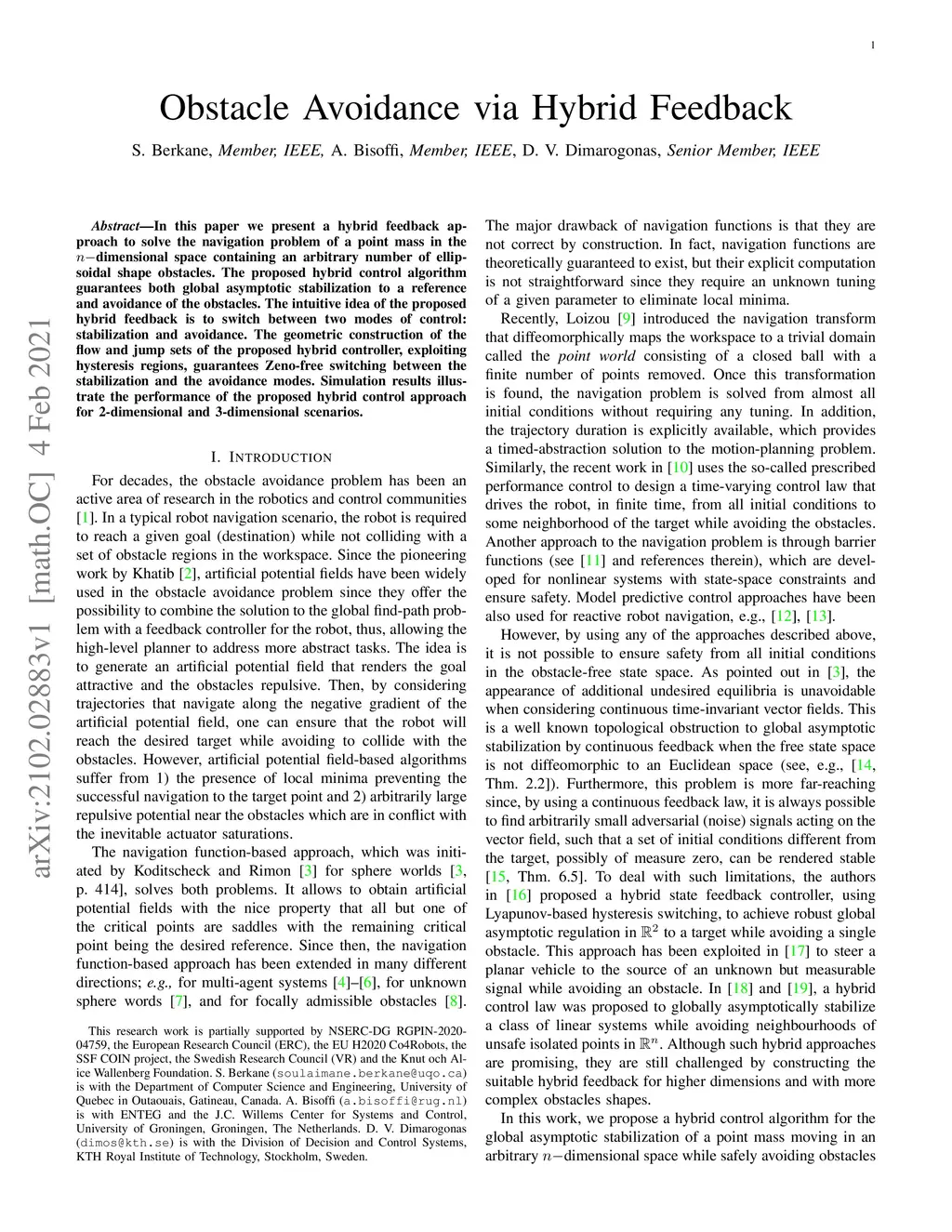 Obstacle Avoidance via Hybrid Feedback
