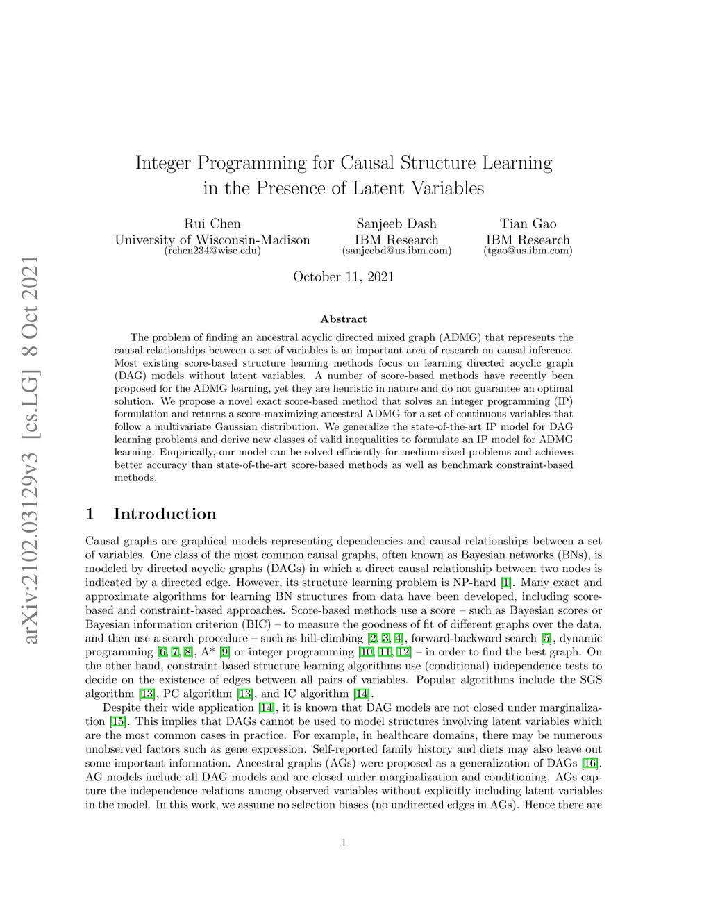 Integer Programming for Causal Structure Learning in the Presence of