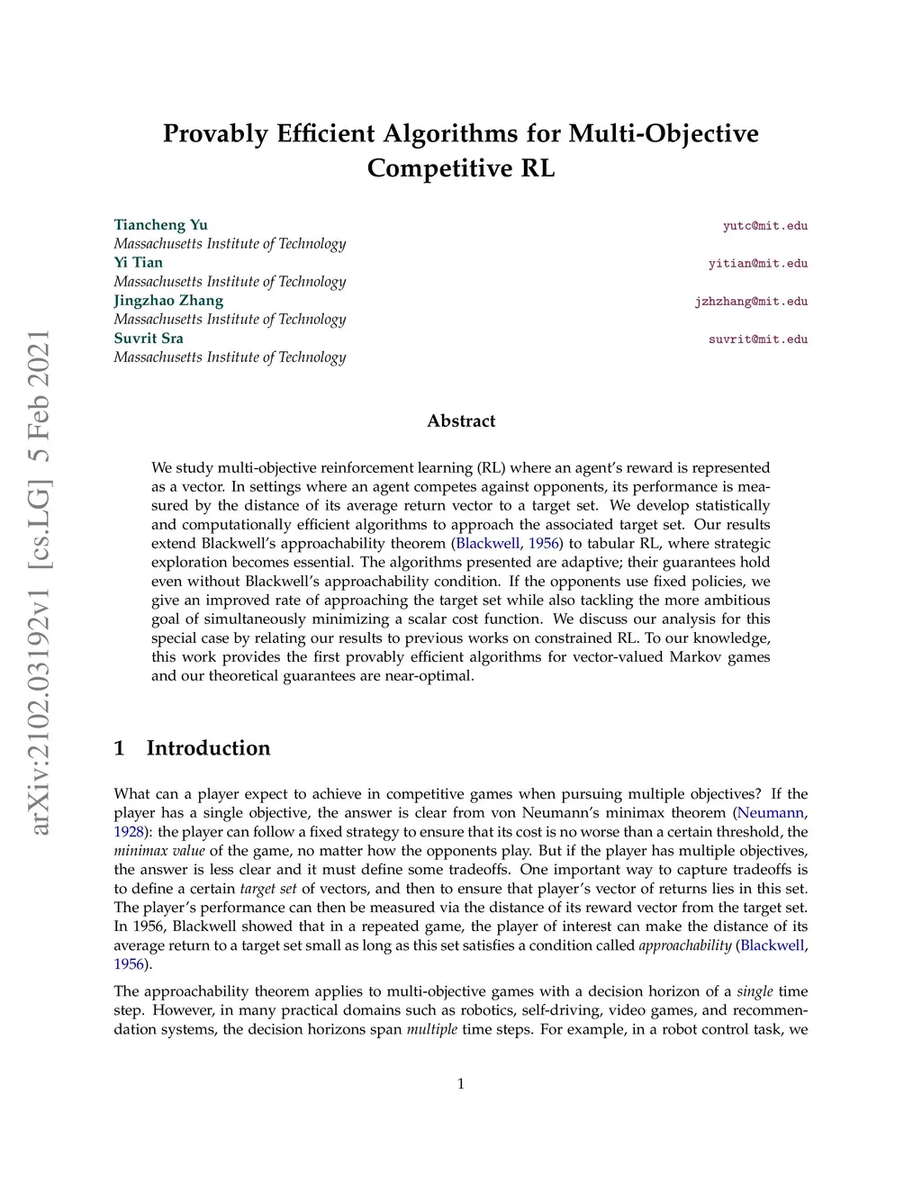 Provably Efficient Algorithms for Multi-Objective Competitive RL