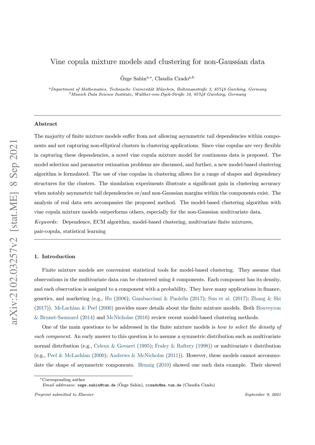 The majority of finite mixture models suffer from not allowing asymmetric tail dependencies within components and not capturing non-elliptical clusters in clustering applications. Since vine copulas are very flexible in capturing these types of dependencies, we propose a novel vine copula mixture model for continuous data. We discuss the model selection and parameter estimation problems and further formulate a new model-based clustering algorithm. The use of vine copulas in clustering allows for a range of shapes and dependency structures for the clusters. Our simulation experiments illustrate a significant gain in clustering accuracy when notably asymmetric tail dependencies or/and non-Gaussian margins within the components exist. The analysis of real data sets accompanies the proposed method. We show that the model-based clustering algorithm with vine copula mixture models outperforms the other model-based clustering techniques, especially for the non-Gaussian multivariate data.