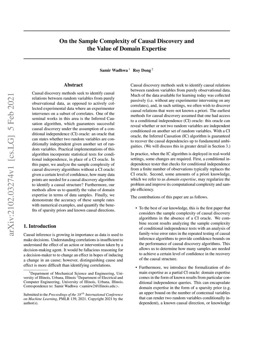 On the Sample Complexity of Causal Discovery and the Value of Domain