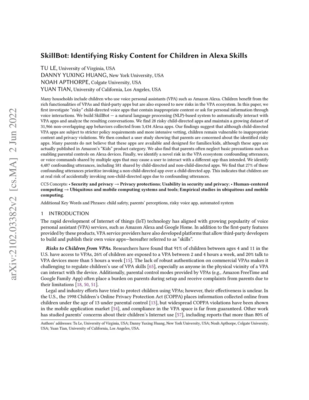 SkillBot: Identifying Risky Content for Children in Alexa Skills