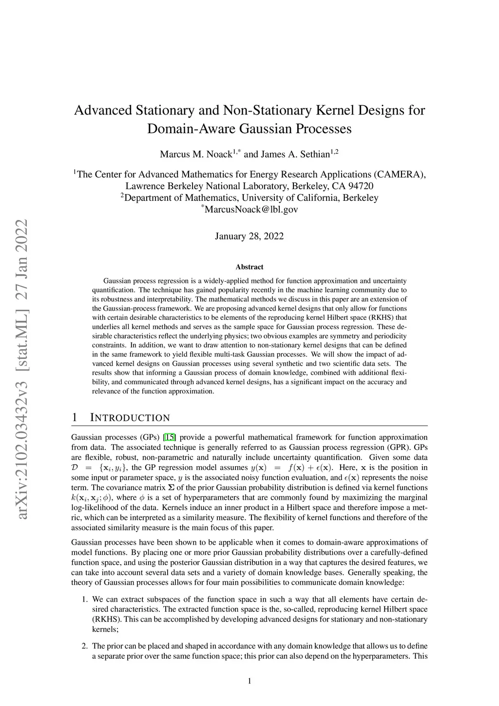 Gaussian process regression is a widely-applied method for function approximation and uncertainty quantification. The technique has gained popularity recently in the machine learning community due to its robustness and interpretability. The mathematical methods we discuss in this paper are an extension of the Gaussian-process framework. We are proposing advanced kernel designs that only allow for functions with certain desirable characteristics to be elements of the reproducing kernel Hilbert space (RKHS) that underlies all kernel methods and serves as the sample space for Gaussian process regression. These desirable characteristics reflect the underlying physics; two obvious examples are symmetry and periodicity constraints. In addition, non-stationary kernel designs can be defined in the same framework to yield flexible multi-task Gaussian processes. We will show the impact of advanced kernel designs on Gaussian processes using several synthetic and two scientific data sets. The results show that including domain knowledge, communicated through advanced kernel designs, has a significant impact on the accuracy and relevance of the function approximation.