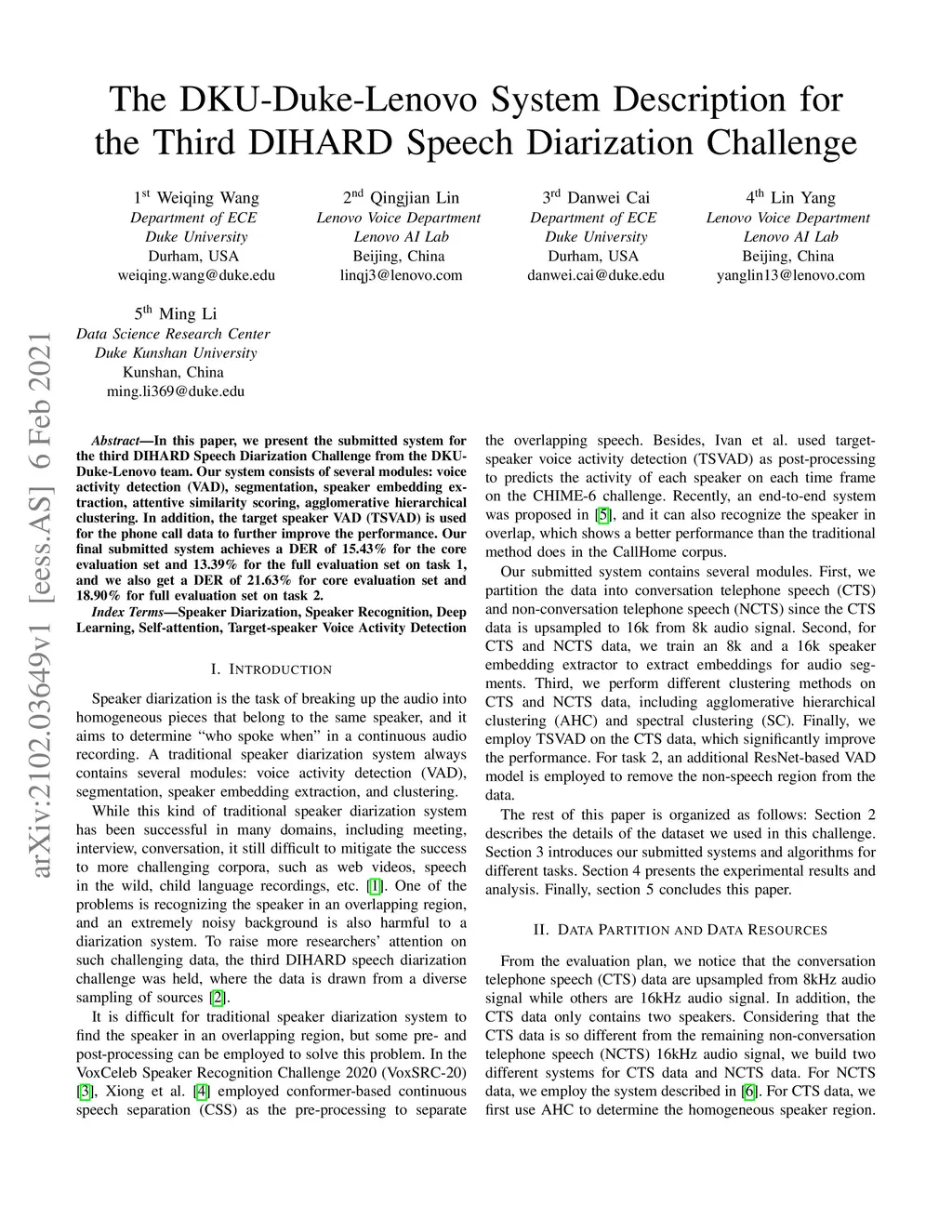 The DKU-Duke-Lenovo System Description for the Third DIHARD Speech
