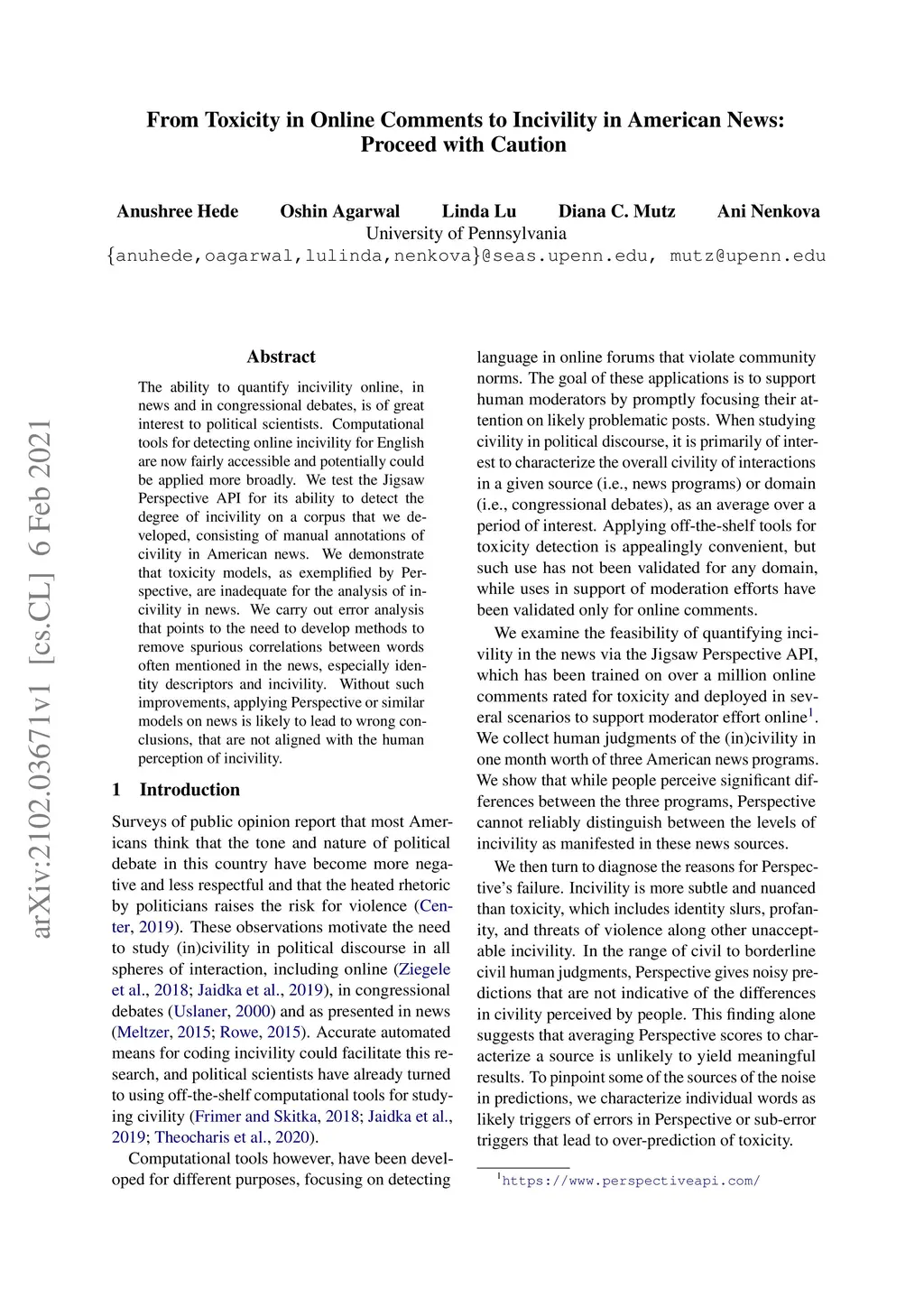 From Toxicity in Online Comments to Incivility in American News: Proceed