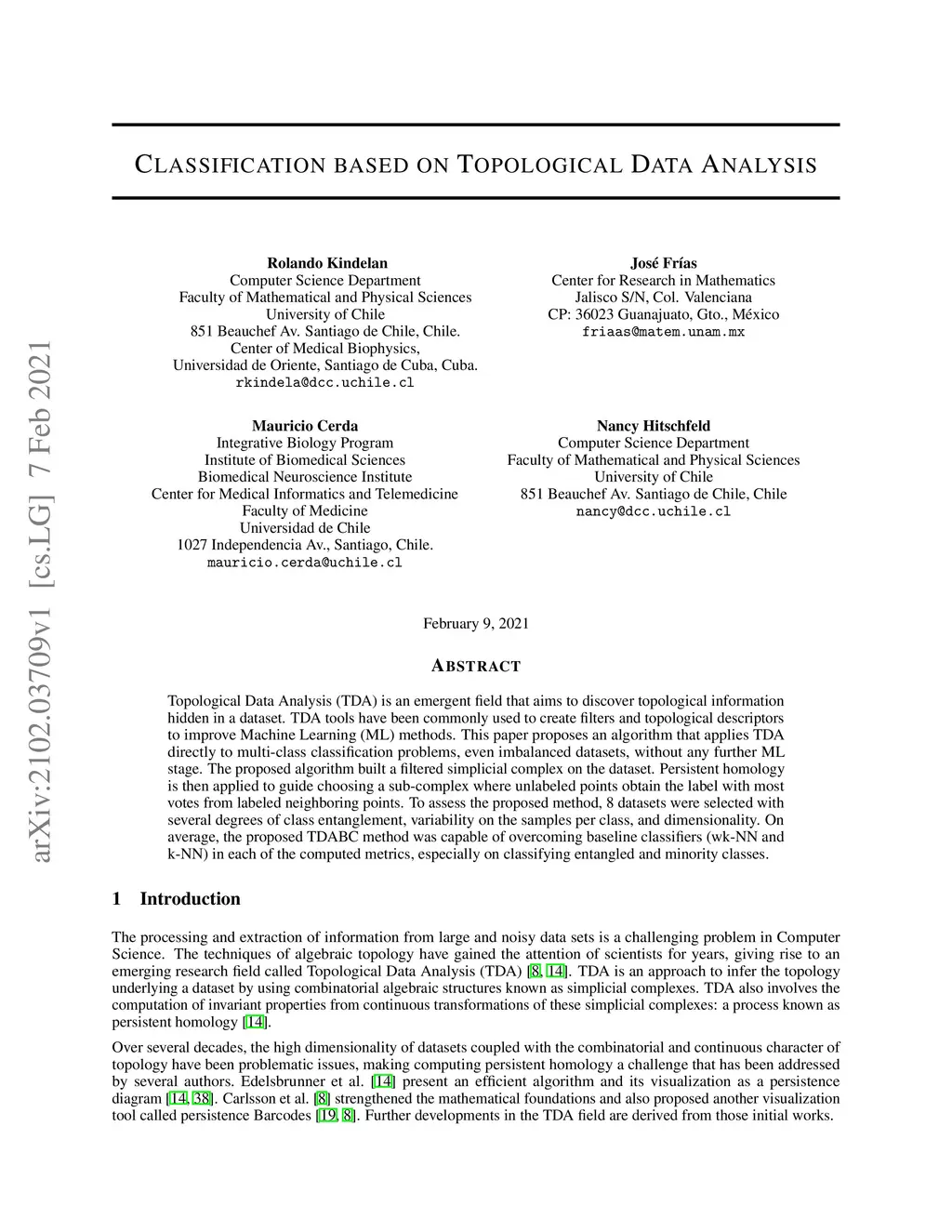 Classification based on Topological Data Analysis