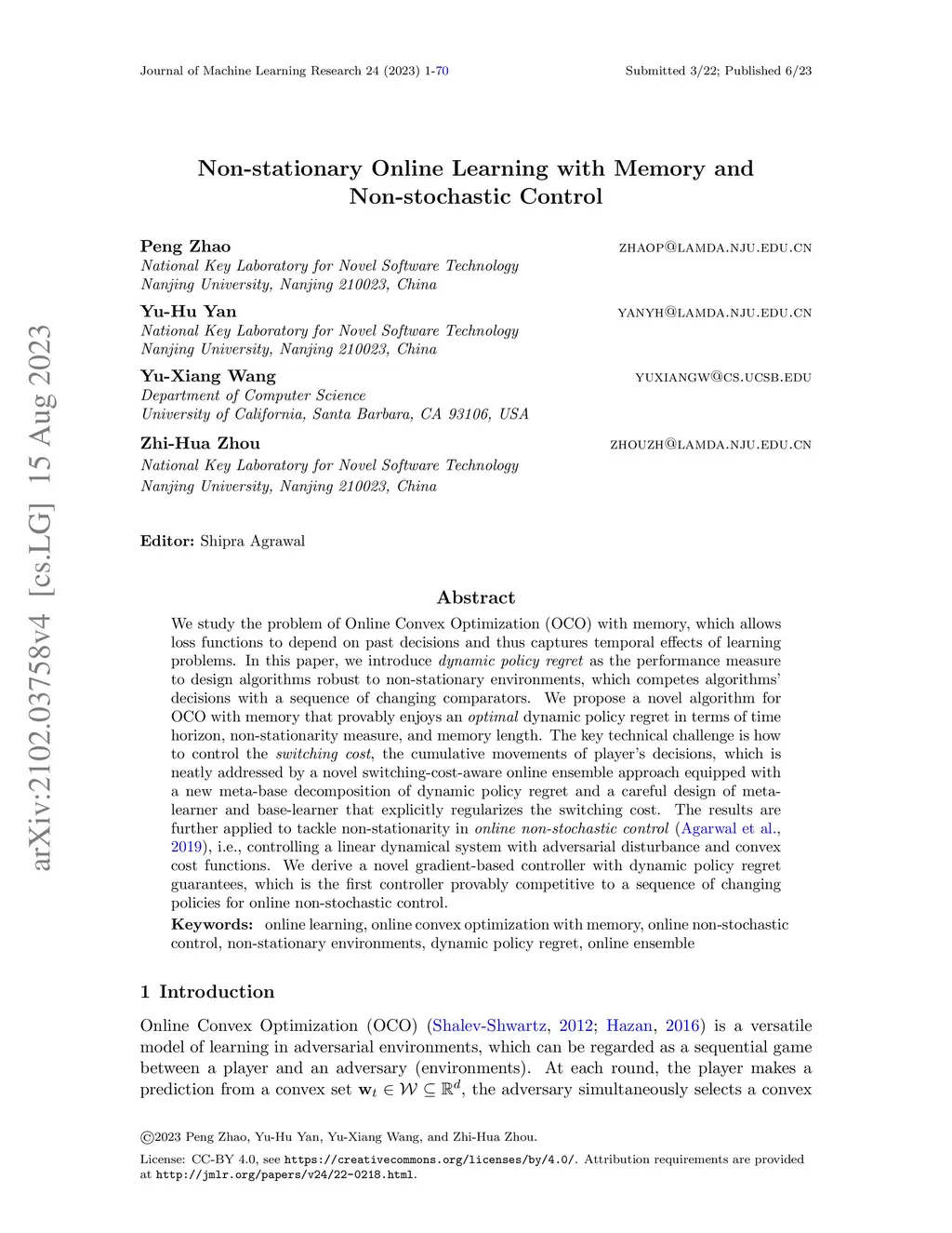 Non-stationary Online Learning with Memory and Non-stochastic Control