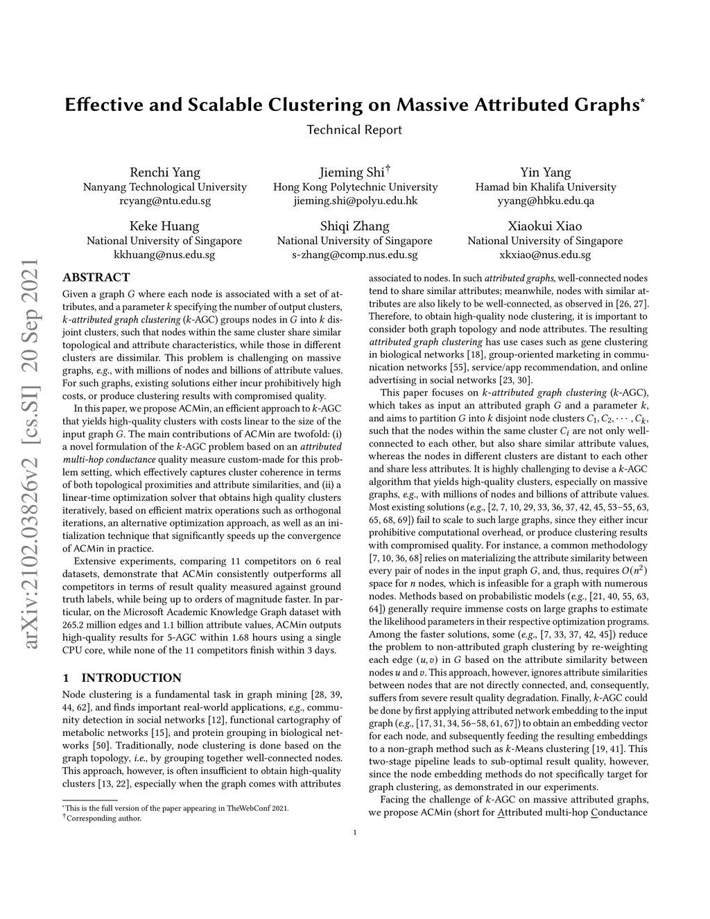 Effective and Scalable Clustering on Massive Attributed Graphs