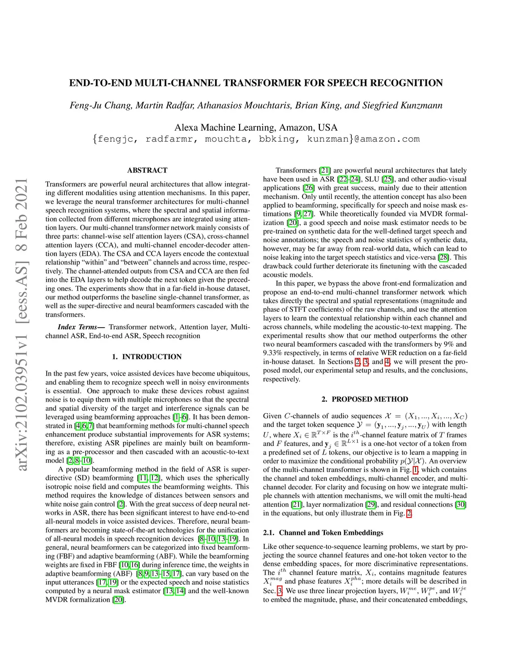 End-to-End Multi-Channel Transformer for Speech Recognition