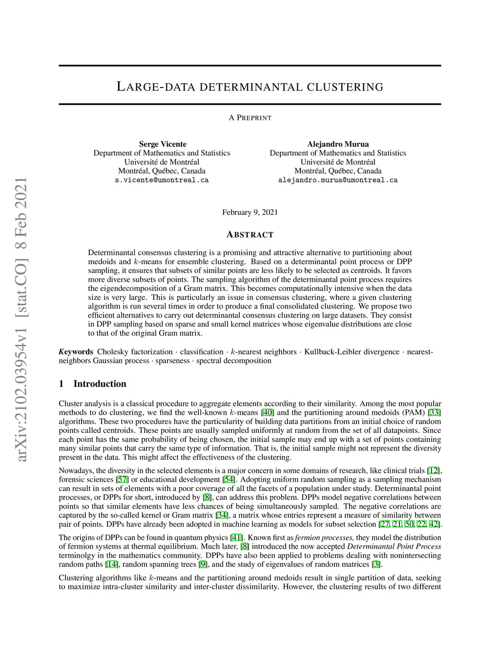 Large-data determinantal clustering