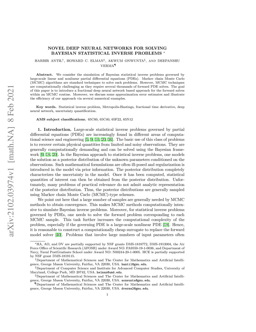 Novel Deep neural networks for solving Bayesian statistical inverse