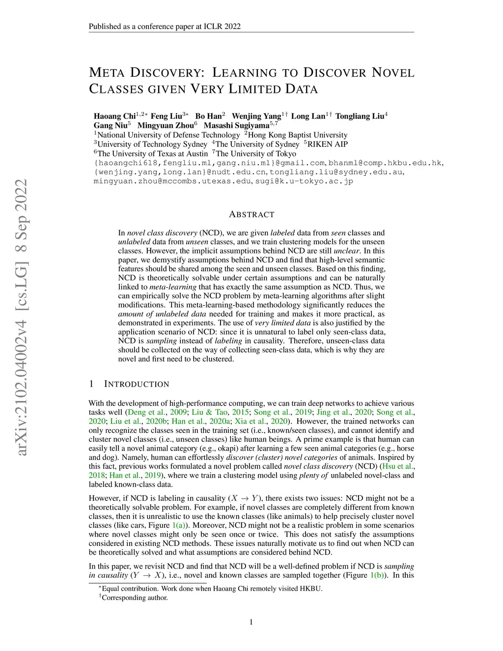 Meta Discovery: Learning to Discover Novel Classes given Very Limited