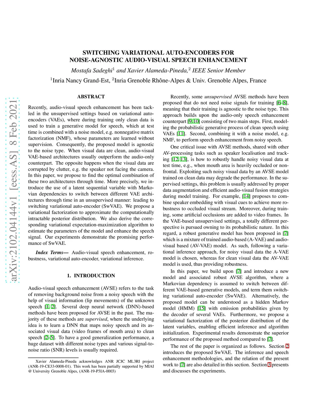 Switching Variational Auto-Encoders for Noise-Agnostic Audio-visual