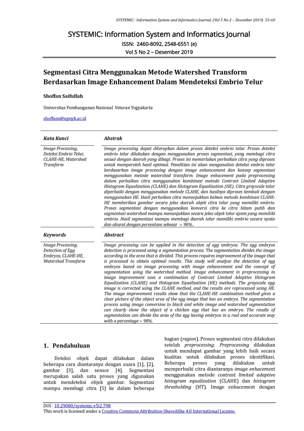 Image Enhancement Dalam Mendeteksi Embrio Telur