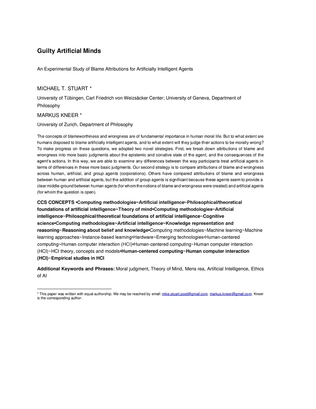 Guilty Artificial Minds