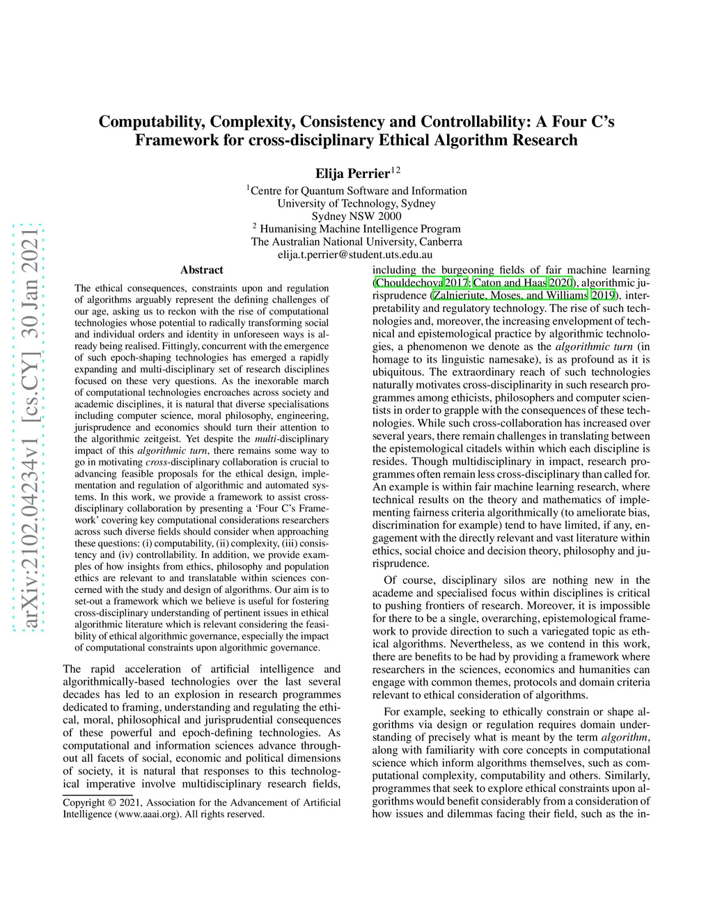 The ethical consequences of, constraints upon and regulation of algorithms arguably represent the defining challenges of our age, asking us to reckon with the rise of computational technologies whose potential to radically transforming social and individual orders and identity in unforeseen ways is already being realised. Yet despite the multidisciplinary impact of this algorithmic turn, there remains some way to go in motivating the crossdisciplinary collaboration that is crucial to advancing feasible proposals for the ethical design, implementation and regulation of algorithmic and automated systems. In this work, we provide a framework to assist cross-disciplinary collaboration by presenting a Four C's Framework covering key computational considerations researchers across such diverse fields should consider when approaching these questions: (i) computability, (ii) complexity, (iii) consistency and (iv) controllability. In addition, we provide examples of how insights from ethics, philosophy and population ethics are relevant to and translatable within sciences concerned with the study and design of algorithms. Our aim is to set out a framework which we believe is useful for fostering cross-disciplinary understanding of pertinent issues in ethical algorithmic literature which is relevant considering the feasibility of ethical algorithmic governance, especially the impact of computational constraints upon algorithmic governance.