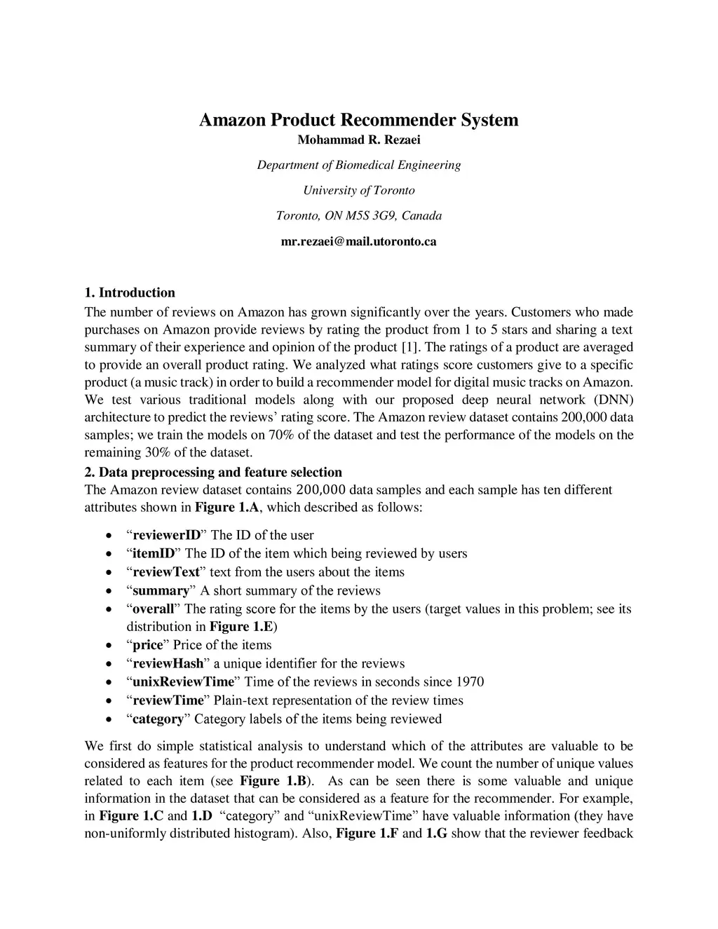 The number of reviews on Amazon has grown significantly over the years. Customers who made purchases on Amazon provide reviews by rating the product from 1 to 5 stars and sharing a text summary of their experience and opinion of the product. The ratings of a product are averaged to provide an overall product rating. We analyzed what ratings score customers give to a specific product (a music track) in order to build a recommender model for digital music tracks on Amazon. We test various traditional models along with our proposed deep neural network (DNN) architecture to predict the reviews rating score. The Amazon review dataset contains 200,000 data samples; we train the models on 70% of the dataset and test the performance of the models on the remaining 30% of the dataset.