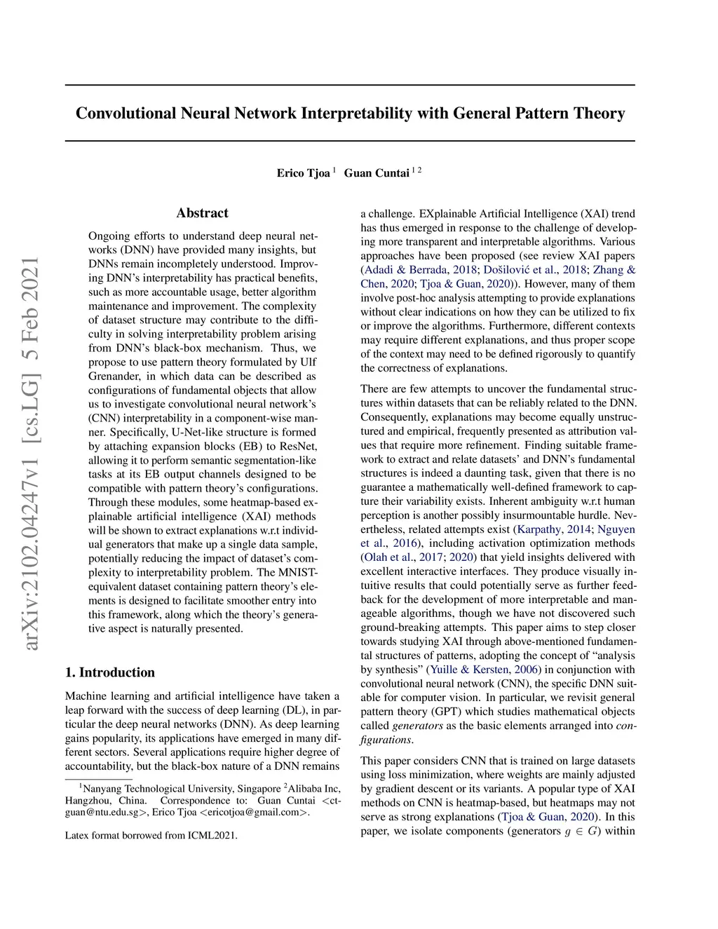 Ongoing efforts to understand deep neural networks (DNN) have provided many insights, but DNNs remain incompletely understood. Improving DNN's interpretability has practical benefits, such as more accountable usage, better algorithm maintenance and improvement. The complexity of dataset structure may contribute to the difficulty in solving interpretability problem arising from DNN's black-box mechanism. Thus, we propose to use pattern theory formulated by Ulf Grenander, in which data can be described as configurations of fundamental objects that allow us to investigate convolutional neural network's (CNN) interpretability in a component-wise manner. Specifically, U-Net-like structure is formed by attaching expansion blocks (EB) to ResNet, allowing it to perform semantic segmentation-like tasks at its EB output channels designed to be compatible with pattern theory's configurations. Through these modules, some heatmap-based explainable artificial intelligence (XAI) methods will be shown to extract explanations w.r.t individual generators that make up a single data sample, potentially reducing the impact of dataset's complexity to interpretability problem. The MNIST-equivalent dataset containing pattern theory's elements is designed to facilitate smoother entry into this framework, along which the theory's generative aspect is naturally presented.