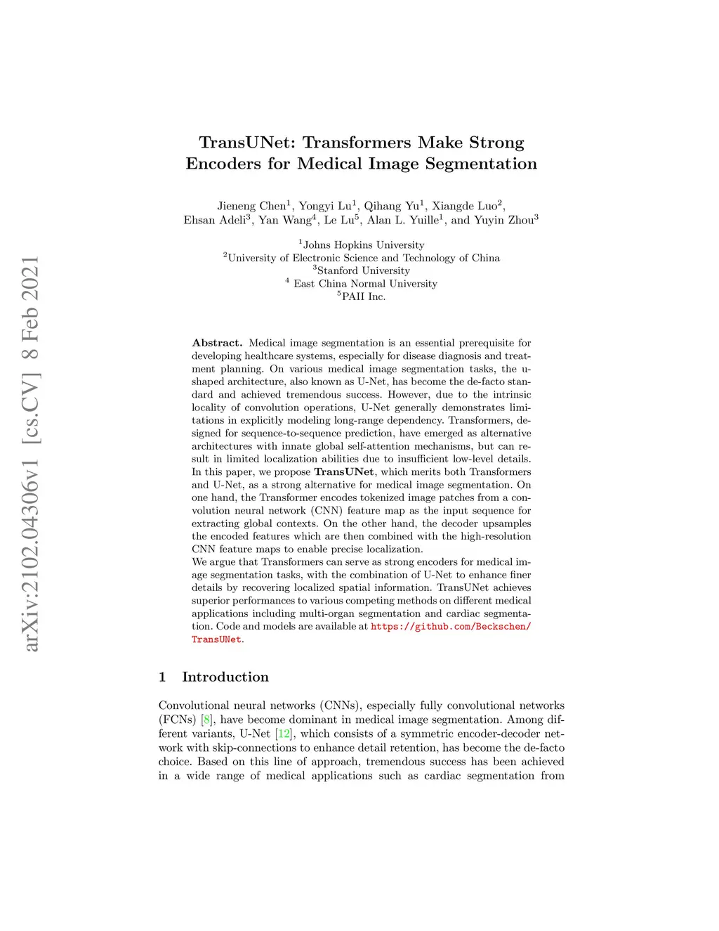 TransUNet: Transformers Make Strong Encoders for Medical Image