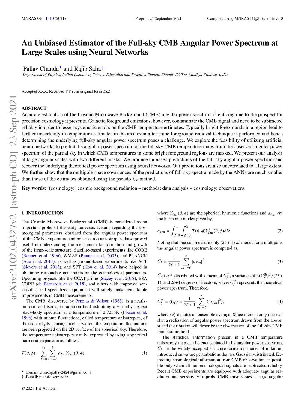 Accurate estimation of the Cosmic Microwave Background (CMB) angular power spectrum is enticing due to the prospect for precision cosmology it presents. Galactic foreground emissions, however, contaminate the CMB signal and need to be subtracted reliably in order to lessen systematic errors on the CMB temperature estimates. Typically bright foregrounds in a region lead to further uncertainty in temperature estimates in the area even after some foreground removal technique is performed and hence determining the underlying full-sky angular power spectrum poses a challenge. We explore the feasibility of utilizing artificial neural networks to predict the angular power spectrum of the full sky CMB temperature maps from the observed angular power spectrum of the partial sky in which CMB temperatures in some bright foreground regions are masked. We present our analysis at large angular scales with two different masks. We produce unbiased predictions of the full-sky angular power spectrum and recover the underlying theoretical power spectrum using neural networks. Our predictions are also uncorrelated to a large extent. We further show that the multipole-space covariances of the predictions of full-sky spectra made by the ANNs are much smaller than those of the estimates obtained using the pseudo- method.