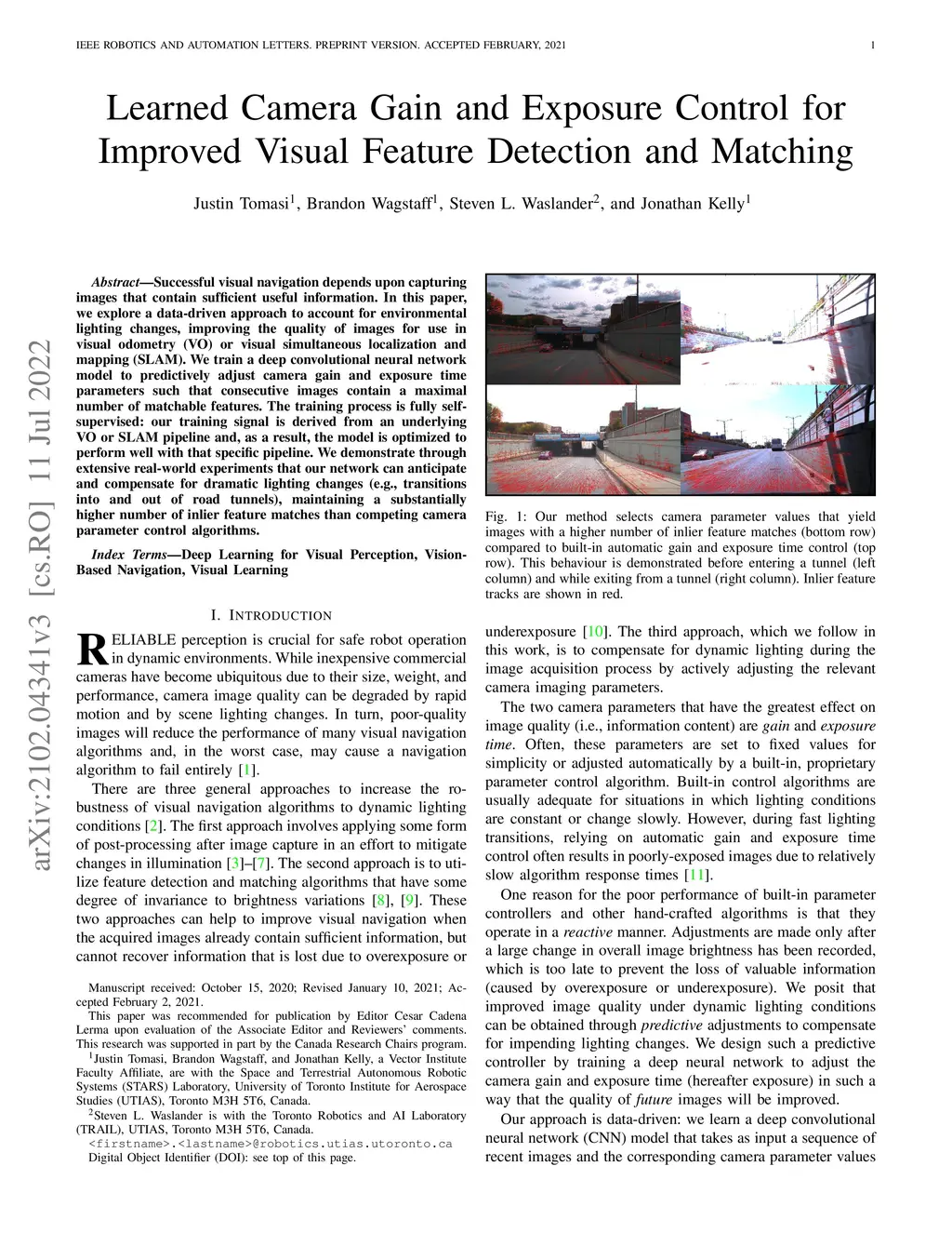Learned Camera Gain and Exposure Control for Improved Visual Feature