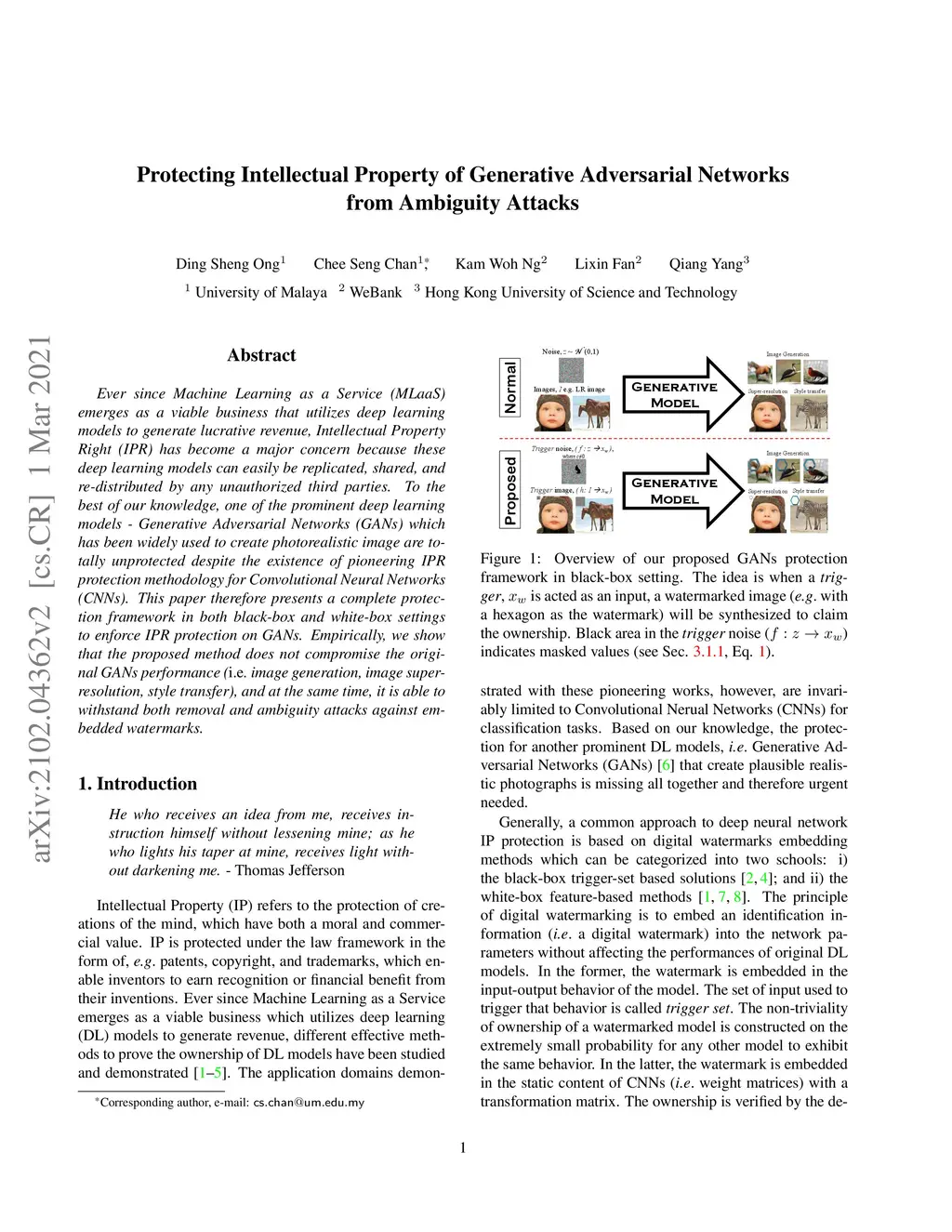 Ever since Machine Learning as a Service (MLaaS) emerges as a viable business that utilizes deep learning models to generate lucrative revenue, Intellectual Property Right (IPR) has become a major concern because these deep learning models can easily be replicated, shared, and re-distributed by any unauthorized third parties. To the best of our knowledge, one of the prominent deep learning models - Generative Adversarial Networks (GANs) which has been widely used to create photorealistic image are totally unprotected despite the existence of pioneering IPR protection methodology for Convolutional Neural Networks (CNNs). This paper therefore presents a complete protection framework in both black-box and white-box settings to enforce IPR protection on GANs. Empirically, we show that the proposed method does not compromise the original GANs performance (i.e. image generation, image super-resolution, style transfer), and at the same time, it is able to withstand both removal and ambiguity attacks against embedded watermarks.