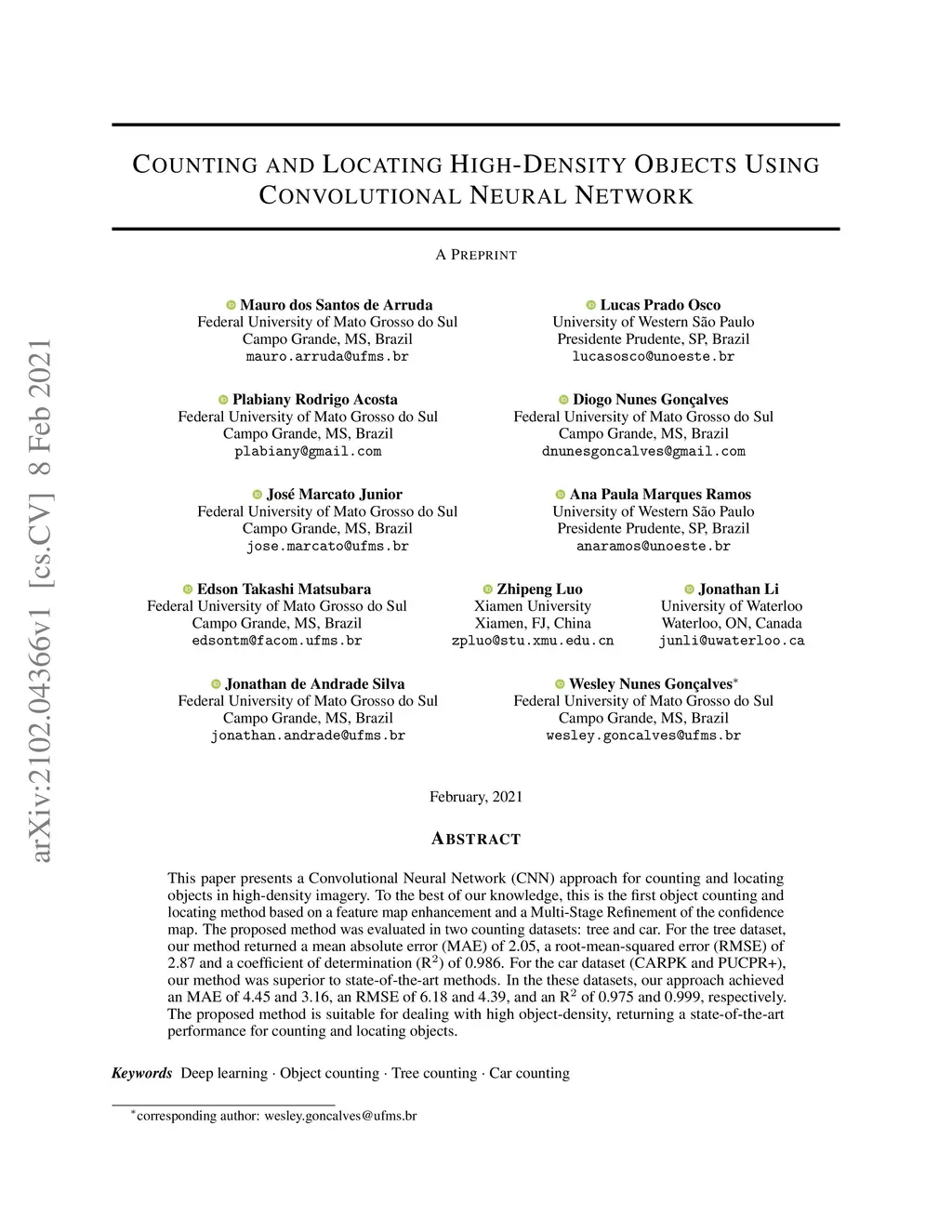 Counting and Locating High-Density Objects Using Convolutional Neural