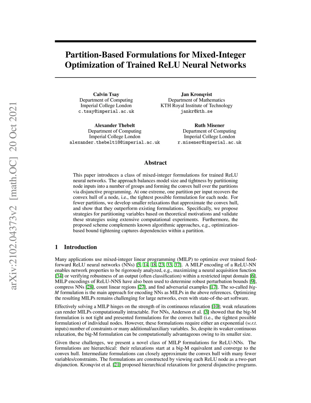 Partition-based formulations for mixed-integer optimization of trained