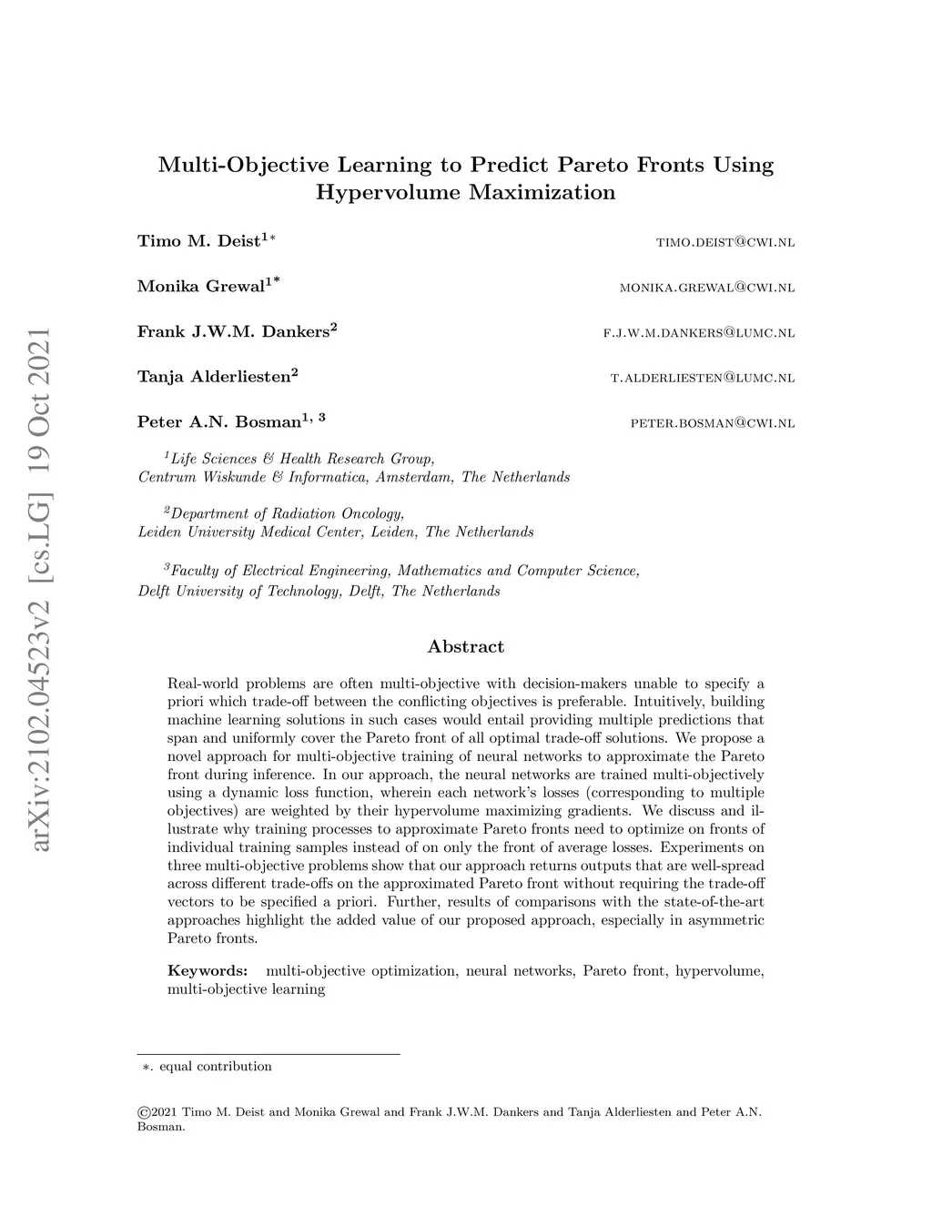 Multi-Objective Learning to Predict Pareto Fronts Using Hypervolume