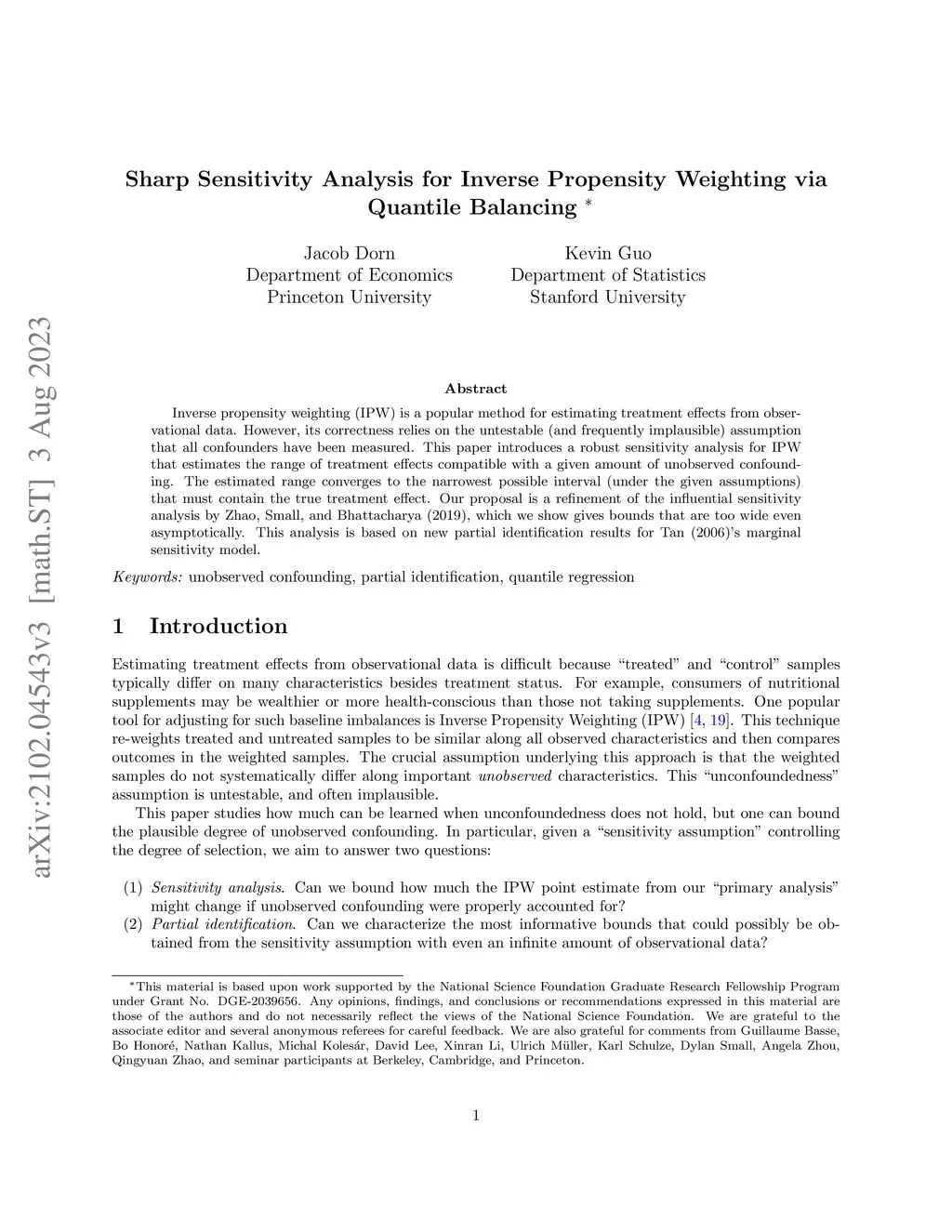 Sharp Sensitivity Analysis for Inverse Propensity Weighting via Quantile