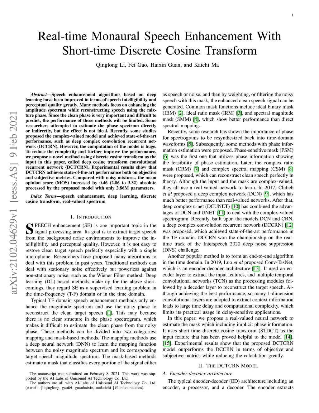 Real-time Monaural Speech Enhancement With Short-time Discrete Cosine