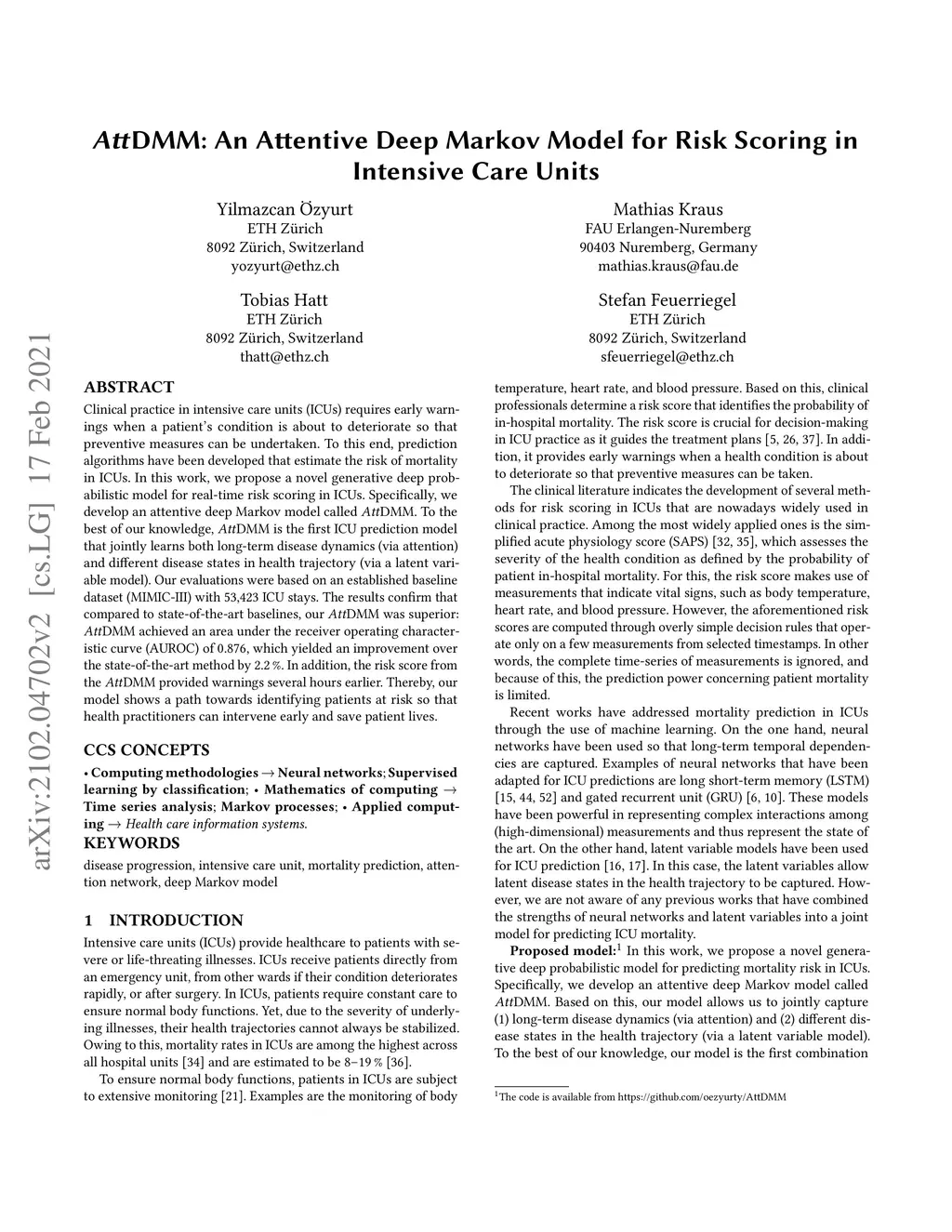 AttDMM: An Attentive Deep Markov Model for Risk Scoring in Intensive