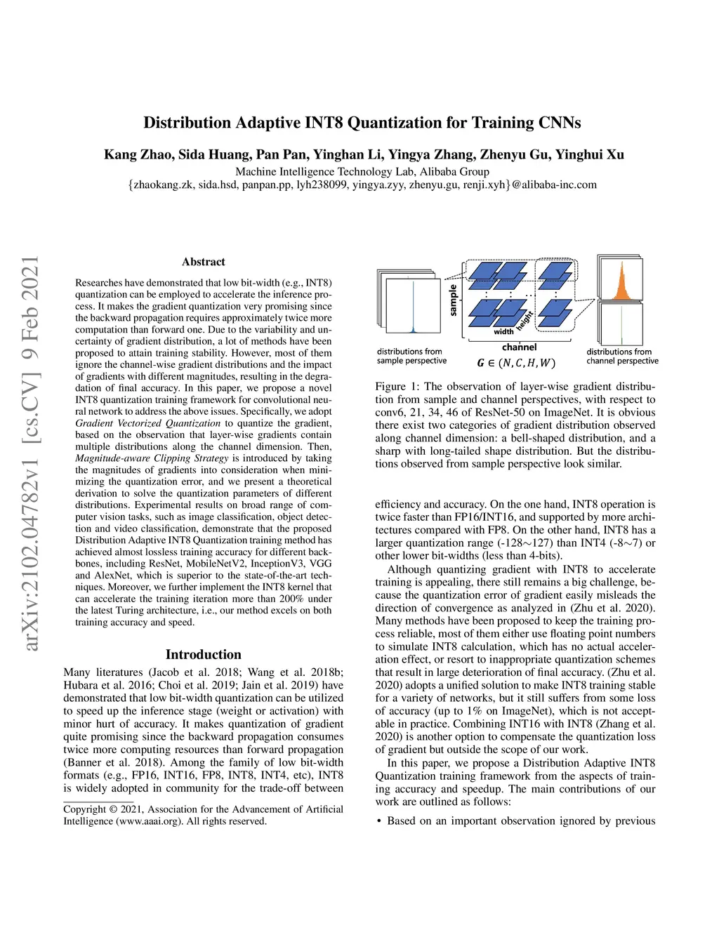 Distribution Adaptive INT8 Quantization for Training CNNs