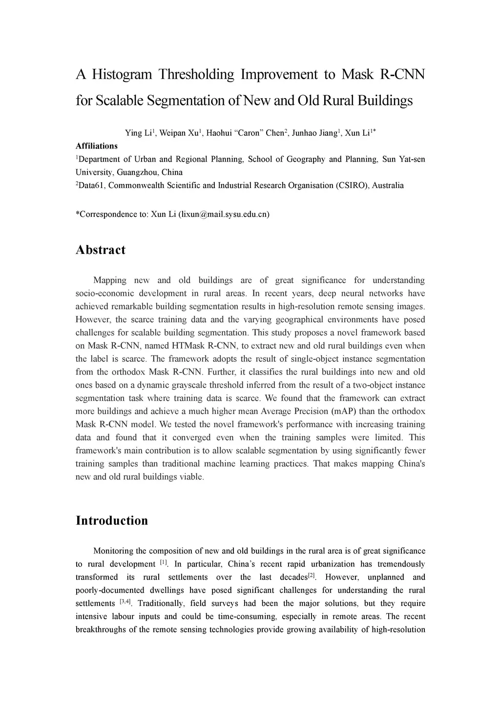 Mapping new and old buildings are of great significance for understanding socio-economic development in rural areas. In recent years, deep neural networks have achieved remarkable building segmentation results in high-resolution remote sensing images. However, the scarce training data and the varying geographical environments have posed challenges for scalable building segmentation. This study proposes a novel framework based on Mask R-CNN, named HTMask R-CNN, to extract new and old rural buildings even when the label is scarce. The framework adopts the result of single-object instance segmentation from the orthodox Mask R-CNN. Further, it classifies the rural buildings into new and old ones based on a dynamic grayscale threshold inferred from the result of a two-object instance segmentation task where training data is scarce. We found that the framework can extract more buildings and achieve a much higher mean Average Precision (mAP) than the orthodox Mask R-CNN model. We tested the novel framework's performance with increasing training data and found that it converged even when the training samples were limited. This framework's main contribution is to allow scalable segmentation by using significantly fewer training samples than traditional machine learning practices. That makes mapping China's new and old rural buildings viable.