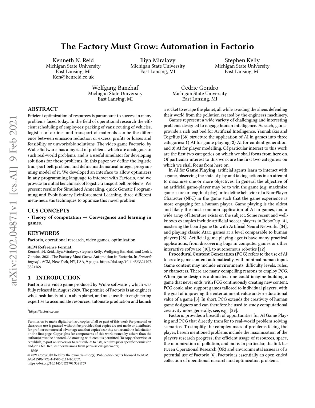 The Factory Must Grow: Automation in Factorio