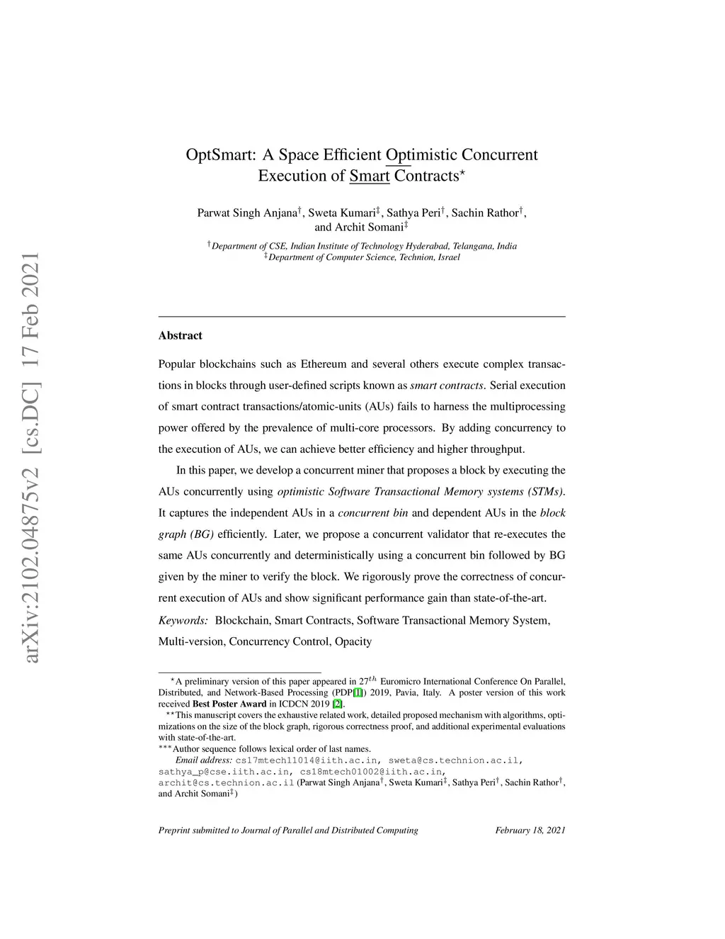 OptSmart: A Space Efficient Optimistic Concurrent Execution of Smart