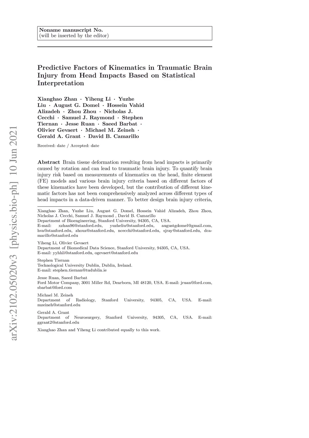 Predictive Factors of Kinematics in Traumatic Brain Injury from Head