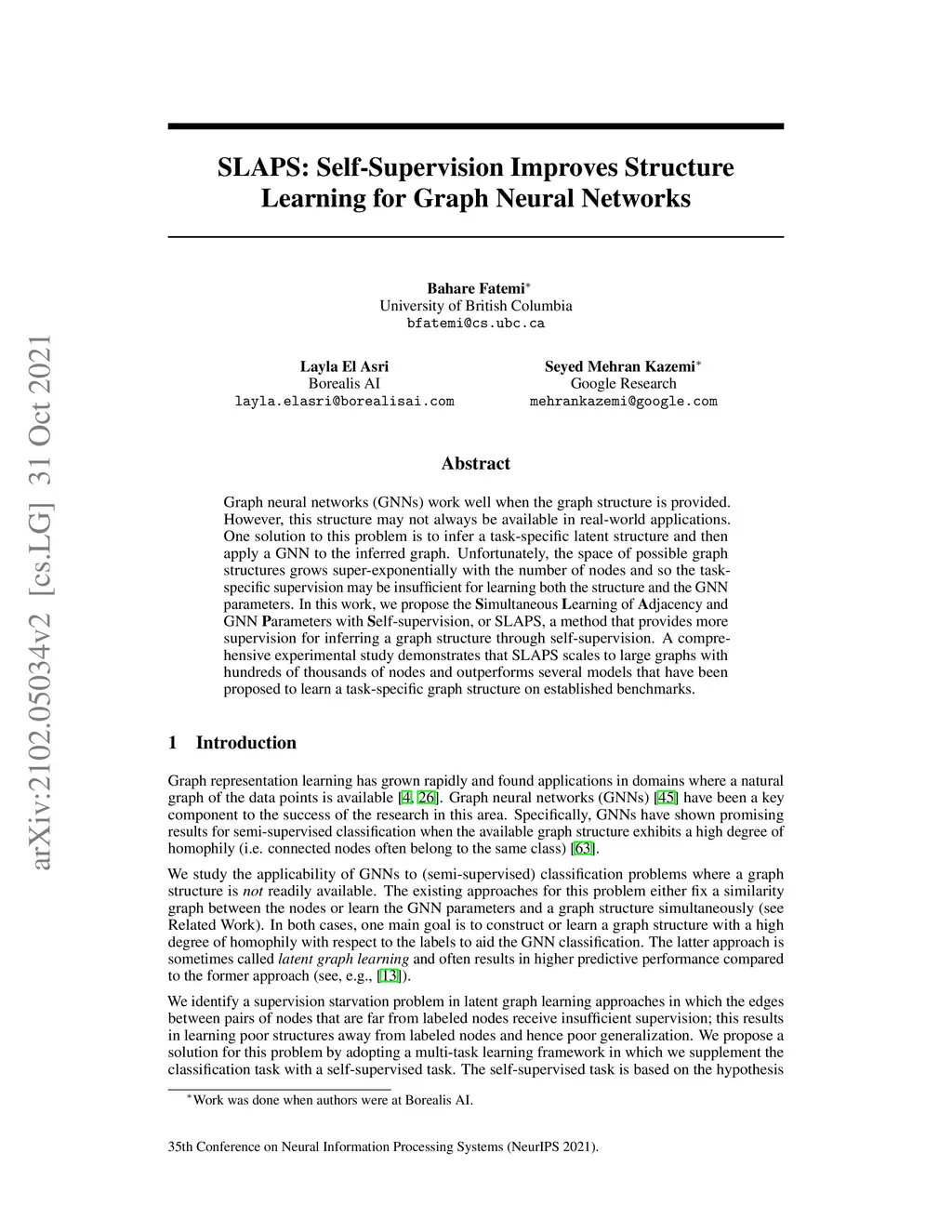 SLAPS: Self-Supervision Improves Structure Learning for Graph Neural