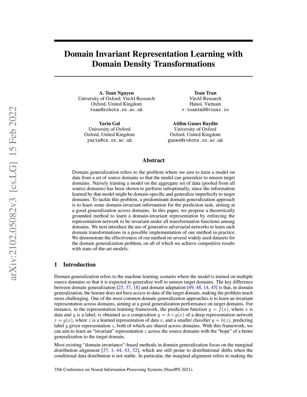 Domain Invariant Representation Learning with Domain Density
