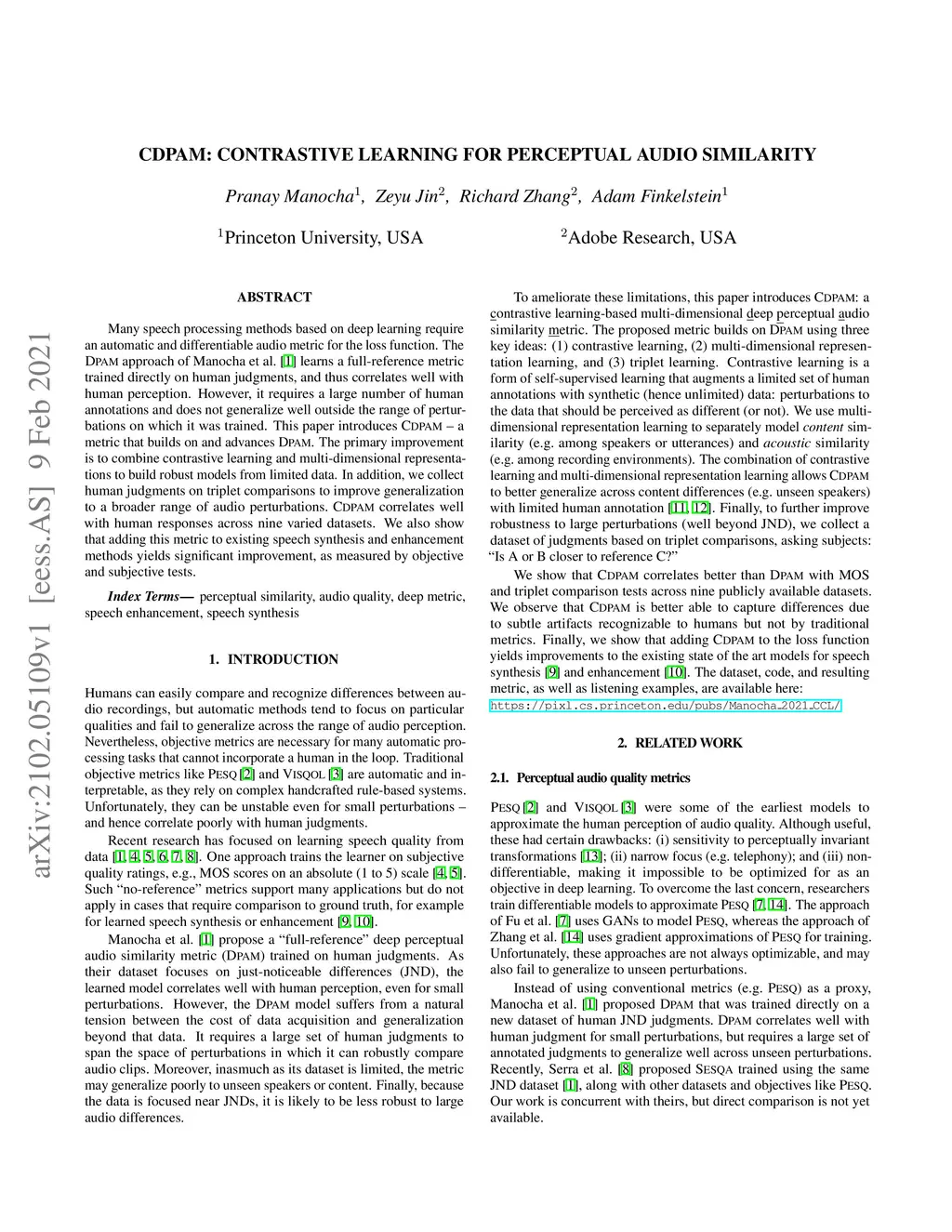 CDPAM: Contrastive learning for perceptual audio similarity