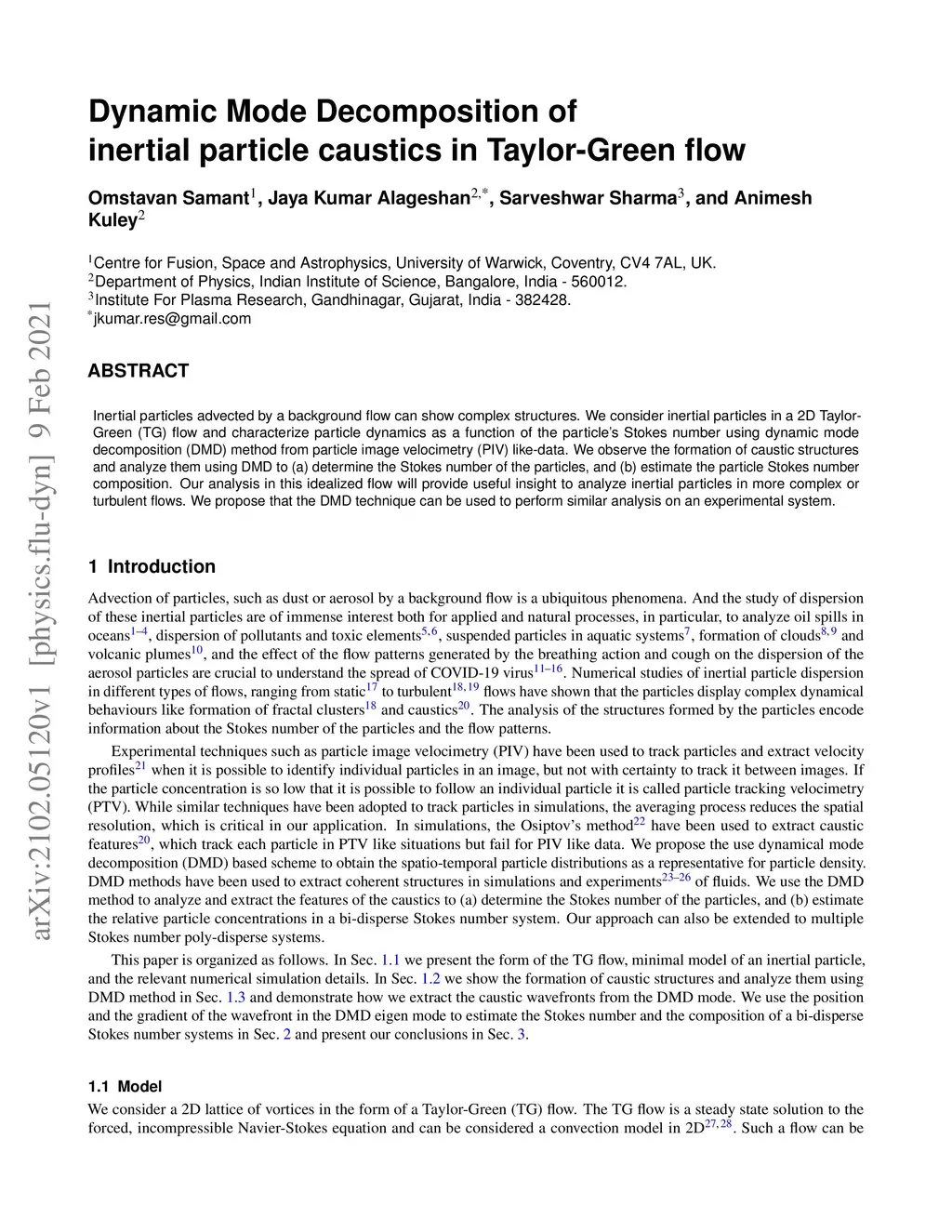 Inertial particles advected by a background flow can show complex structures. We consider inertial particles in a 2D Taylor-Green (TG) flow and characterize particle dynamics as a function of the particle's Stokes number using dynamic mode decomposition (DMD) method from particle image velocimetry (PIV) like-data. We observe the formation of caustic structures and analyze them using DMD to (a) determine the Stokes number of the particles, and (b) estimate the particle Stokes number composition. Our analysis in this idealized flow will provide useful insight to analyze inertial particles in more complex or turbulent flows. We propose that the DMD technique can be used to perform a similar analysis on an experimental system.