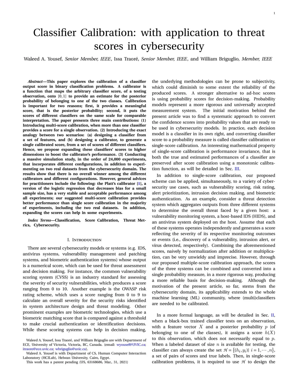 Classifier Calibration: with application to threat scores in
