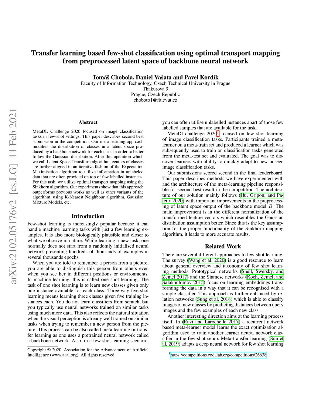 MetaDL Challenge 2020 focused on image classification tasks in few-shot settings. This paper describes second best submission in the competition. Our meta learning approach modifies the distribution of classes in a latent space produced by a backbone network for each class in order to better follow the Gaussian distribution. After this operation which we call Latent Space Transform algorithm, centers of classes are further aligned in an iterative fashion of the Expectation Maximisation algorithm to utilize information in unlabeled data that are often provided on top of few labelled instances. For this task, we utilize optimal transport mapping using the Sinkhorn algorithm. Our experiments show that this approach outperforms previous works as well as other variants of the algorithm, using K-Nearest Neighbour algorithm, Gaussian Mixture Models, etc.