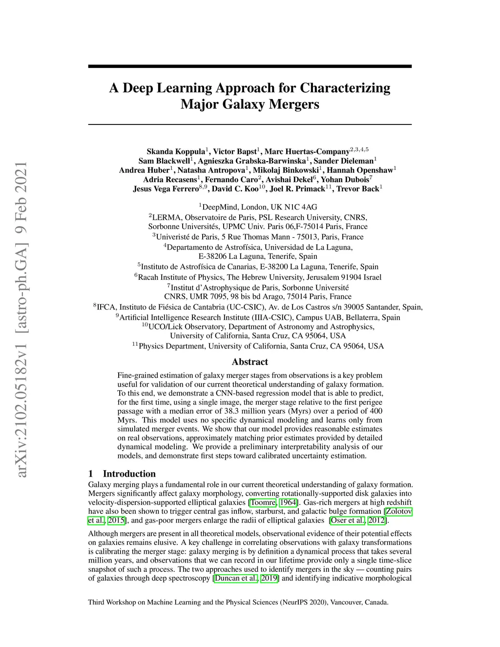 Fine-grained estimation of galaxy merger stages from observations is a key problem useful for validation of our current theoretical understanding of galaxy formation. To this end, we demonstrate a CNN-based regression model that is able to predict, for the first time, using a single image, the merger stage relative to the first perigee passage with a median error of 38.3 million years (Myrs) over a period of 400 Myrs. This model uses no specific dynamical modeling and learns only from simulated merger events. We show that our model provides reasonable estimates on real observations, approximately matching prior estimates provided by detailed dynamical modeling. We provide a preliminary interpretability analysis of our models, and demonstrate first steps toward calibrated uncertainty estimation.