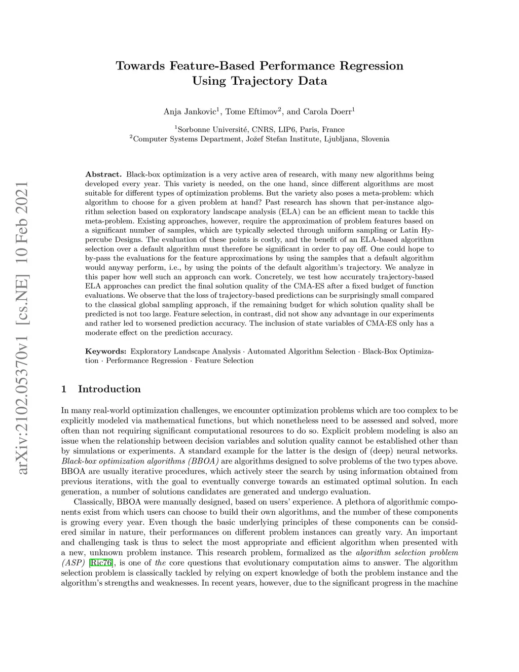 Towards Feature-Based Performance Regression Using Trajectory Data