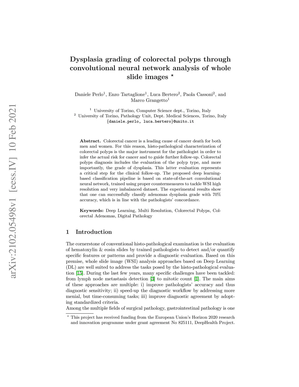Dysplasia grading of colorectal polyps through CNN analysis of WSI