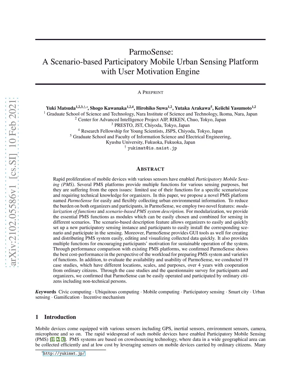 ParmoSense: A Scenario-based Participatory Mobile Urban Sensing Platform