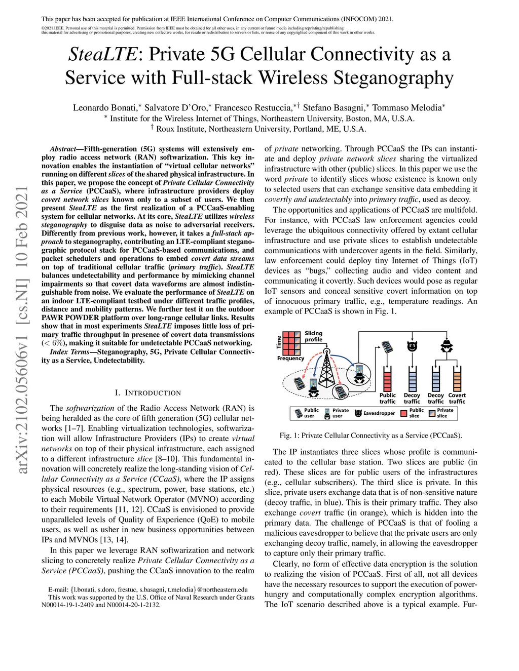 Fifth-generation (5G) systems will extensively employ radio access network (RAN) softwarization. This key innovation enables the instantiation of "virtual cellular networks" running on different slices of the shared physical infrastructure. In this paper, we propose the concept of Private Cellular Connectivity as a Service (PCCaaS), where infrastructure providers deploy covert network slices known only to a subset of users. We then present SteaLTE as the first realization of a PCCaaS-enabling system for cellular networks. At its core, SteaLTE utilizes wireless steganography to disguise data as noise to adversarial receivers. Differently from previous work, however, it takes a full-stack approach to steganography, contributing an LTE-compliant steganographic protocol stack for PCCaaS-based communications, and packet schedulers and operations to embed covert data streams on top of traditional cellular traffic (primary traffic). SteaLTE balances undetectability and performance by mimicking channel impairments so that covert data waveforms are almost indistinguishable from noise. We evaluate the performance of SteaLTE on an indoor LTE-compliant testbed under different traffic profiles, distance and mobility patterns. We further test it on the outdoor PAWR POWDER platform over long-range cellular links. Results show that in most experiments SteaLTE imposes little loss of primary traffic throughput in presence of covert data transmissions (< 6%), making it suitable for undetectable PCCaaS networking.