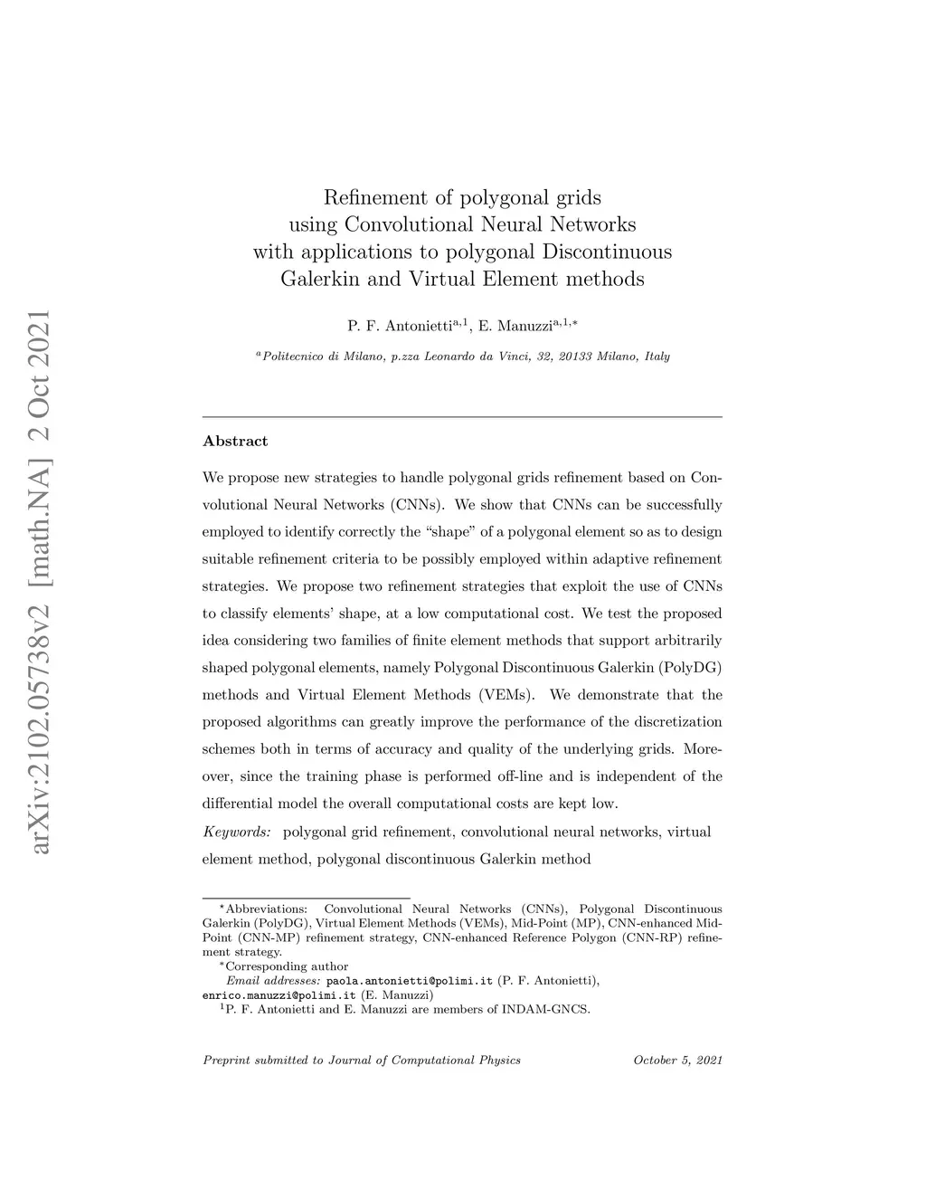 Refinement of polygonal grids using Convolutional Neural Networks with